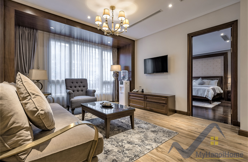 We have this serviced apartment in Hoan Kiem district, Hanoi to rent located on Hang Chuoi street with walking distance to Hanoi Opera House or Hoan Kiem lake. The property is 2 bedrooms, 2 bathrooms and has 100m2 of living space.